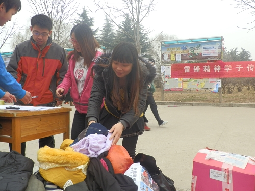 3月5日中午,由公司联合葡酒、动科、食品、人文四个学院,在西区雕塑前开展的“暖春”旧衣旧物募捐活动。