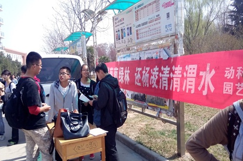 活动前期,在西区雕塑开展了“保护渭河,我们在行动”为主题的大型签名活动,征集了许多西农学子的签名,唤起更多人保护渭河的意识,并号召大家积极参加到活动中来。活动当天,同学们前往渭河及其沿岸开展拾捡垃圾、宣传环保等活动。