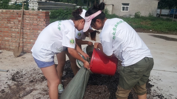 这几天我们的主要任务就是混合基质,主要包括草炭、蛭石以及珍珠岩。这三位常客在火辣辣的太阳下异常的活跃,尤其是珍珠岩特别的呛人。这几天我们这些学校里的孩子企业里的工人真的是汗水湿了又干,干了又湿都不知道多少次了。几乎每时每刻都是汗流浃背,默默的享受着这免费的桑拿,但还是得坚持下去。不会用铁锹的我现在用起来也游刃有余了,只是手上多了几颗氺晶泡而已。是呀!只要坚持,坚持下去即使再大堆的基质在我们这几个所谓的“汉子“手里也后就那么回事了。足足25立方米的基质呀就这样被我们消灭了。最后只看见满地的一排排的编织袋子盛满了基质。顿时觉得好有成就感!此时的我才设身处地的真真的感觉到作为一名园艺工作者的辛苦与劳累。他们在用双手铸造园艺的明天,用心灵浇筑企业的璀璨。以前的我们只是在书本上辛苦些,而现在终于体会到了这份责任。明白了这份担当。