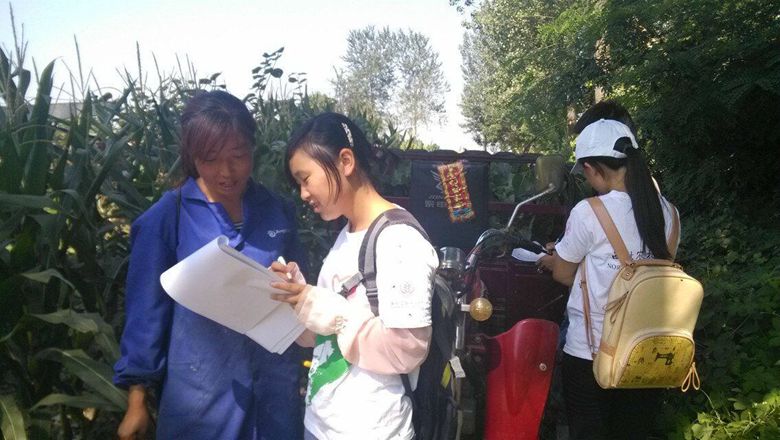 到村子之后队员们主要采取走访的方式进行问卷的填写,队员们走街串巷或从一个地头到另一个地头,争分夺秒争取可以调查更多的人,一丝一毫也不敢懈怠。果农们配合,队员们高兴,果农们不配合,队员们也不气馁。虽说天气很热,经过一天的走访调查很累,但是看着填好的厚厚的问卷,队员们感觉是值得的。
