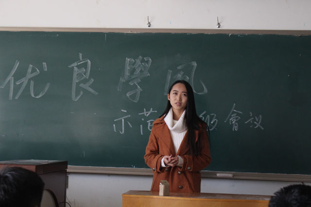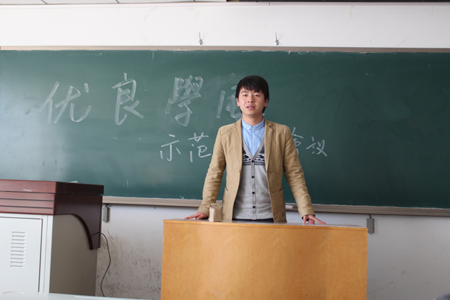 接下来,园艺134班的团支书任桂锦学姐就优良学风示范班的具体建设工作为大家提供了详尽的指导。任桂锦学姐首先向大家抛出了一个问题:大家当初为什么要竞选班委?竞选时激情澎湃的竞选宣言,现在还记得么?接着,学姐介绍了自己当时竞选班委的情况并就工作中积累的有益经验与大家做了交流,如工作中要做到运筹帷幄而非事必躬亲、要有真诚的服务意识而非时刻要求有所回报、注意培养基于个人魅力的班委权威而非基于职位的虚假权威、注重理顺工作机制以及做好班级及个人规划等。最后,学姐就优良学风示范班的具体建设工作做了详尽的说明,如具体指标的设定以及达成预期目标的方法措施等。学姐还重点强调了班委在学风建设中的引领作用。整个交流过程中,任桂锦学姐优雅的谈吐,得体的打扮,给人一种落落大方、亭亭玉立的感觉,也透露出成熟的气息。学姐的一席肺腑之言也让大家在心中对自己工作上所面临的问题有了更深刻的认识。