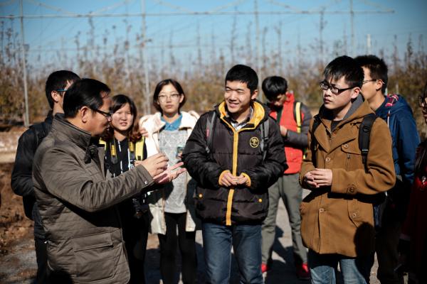 白水苹果试验始建于2005年,是公司探索政府推动下以大学为依托基层农技力量为骨干的农业科技推广新模式的首批实践,在担负着科学研究、科技示范、教学实习与人才培养等重要任务的同时,也极大的促进了当地农民增收和农村发展。通过站内的宣传资料,同学们了解到苹果试验站以“国内一流,世界知名”为发展目标,与国内外多所大学与科研单位建立了技术交流和合作关系,曾多次接待各国科研人员。在站内工作人员的带领下,同学们参观了品种选育区、栽培试验区、苗木繁育区等田间试验示范功能区,听取了试验站老师关于果园田间水肥、果园生草、树形培养、品种选育等实验研究,并就苹果育种、栽培、贮藏等相关领域问题向进行提问,与试验站老师共同讨论白水试验站应如何在“农业互联网+”的新形势下把握机会,引领当地农业发展。参观结束后,试验站老师还与各位员工一同分享了科研成果,员工们也对苹果的外观、口感赞不绝口。