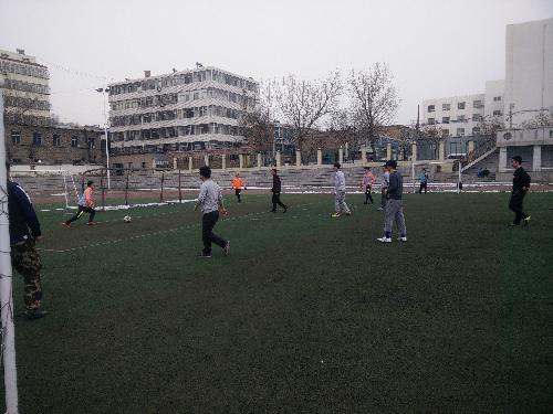 团队成员与高中生进行足球友谊赛