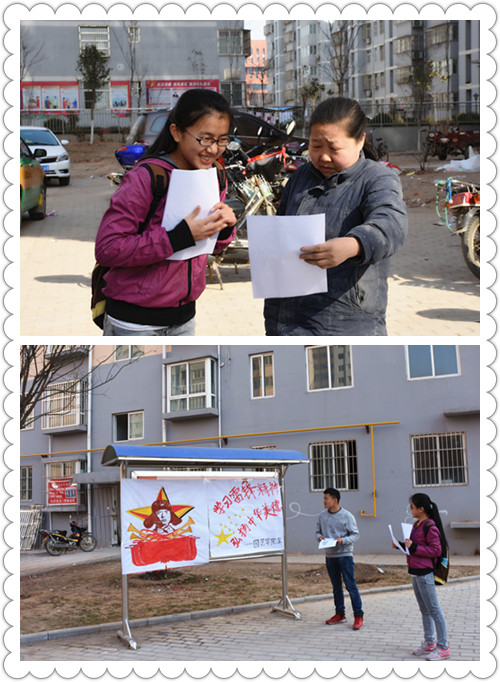 活动中,实践部同学们开展了形式多样的志愿服务。为社区居民发放宣传雷锋精神的宣传单,张贴宣传海报,宣传雷锋精神,号召社区居民互助互爱,创建良好的社区风气。学习雷锋精神要从娃娃抓起,同学们还来到春蕾幼儿园,为小朋友们介绍了雷锋事迹,并向他们阐述学习雷锋的重要性,希望他们能在团结友爱的环境中健康成长。
