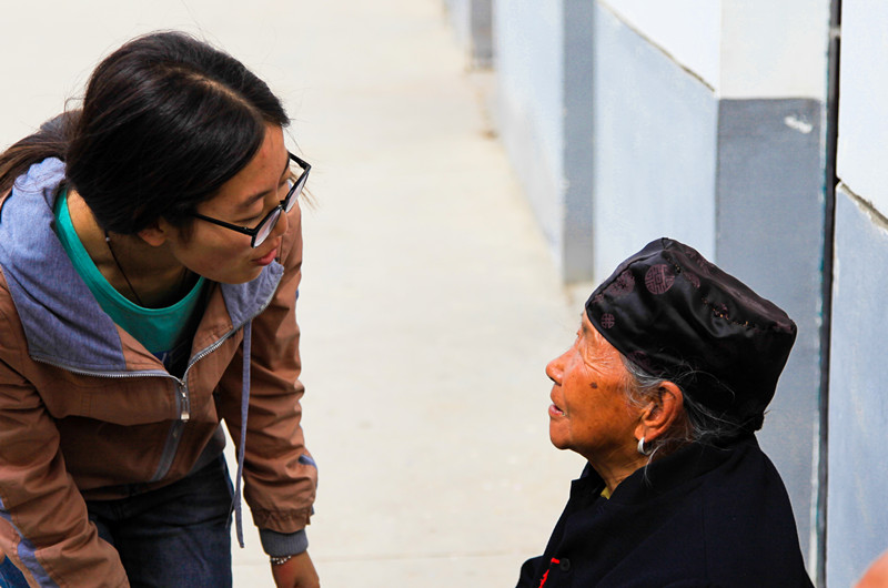 劳作后队员们了解到当地有一个被誉为“幸福之家”的养老院,队员们打扫好个人卫生后赶去养老院,与老人们亲切的交谈并帮忙打扫了卫生,一位老奶奶慈祥地对大家说:“天气还冷,孩子们别冻着咯!”亲切的话语让队员们心中燃起暖暖的关怀与感动,从而更加认真地打扫,一心为老人创造一个干净舒适的生活环境。昔日里冷清寂寞的养老院,在队员们活跃身影的映衬下,变得生机勃勃、热闹欢腾。