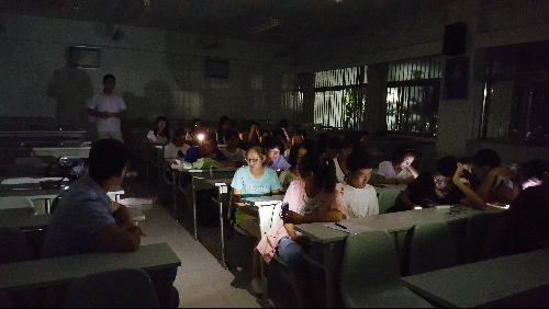 班会一直持续到教学楼熄灯,同学们在手电灯光中与杨老师进行交流与沟通,虽然时间很晚了,但大家依然神采奕奕,眼神中透露出对大学新生活的期待。