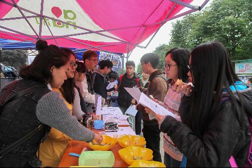 虽然活动期间下着蒙蒙细雨,但依然不能熄灭同学们的热情,各个部门分工明确、相互协作,现场活动井然有序、气氛热烈,前来咨询报名的员工络绎不绝,纷纷表示想要参加活动,锻炼自己的能力。当被问起对该活动的看法时,其中一位现场报名的同学说到:“我对创业很有兴趣,但因为我是老员工,所以被限制住了,我觉得这是一个很好锻炼机会和体验平台,既能提升自己,又能有收入,何乐而不为呢?”