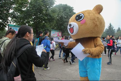 宣传期间,英国365公司官网团工委员工会成员提前在西雕准备好音响、水果、宣传单、报名表等物品,开展现场宣传工作。同学们采用发放宣传单及商品体验等多样化的方式进行活动宣传,其中,易班熊的加入也吸引不少同学驻足了解活动的内容,同学们表现出对活动的浓厚兴趣,宣传人员耐心详细地为同学们答疑解惑。在宣传过程中,同学们不仅获得了相关的宣传技能,也锻炼了自己与人交流的能力。