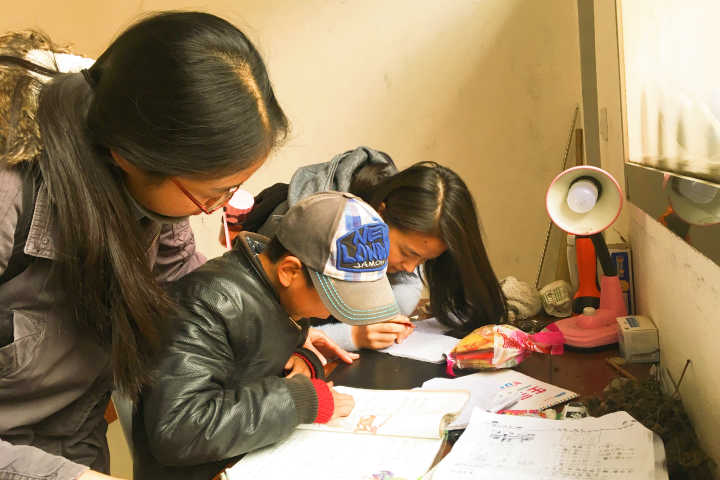 来到农户高先生家中,队员田凯超首先热情的进行了自我介绍,随后便询问了孩子们的近期考试成绩与学习上存在的弱项,根据高先生的回答,队员们对支教内容与难度做了相应的调整改进。走进屋内,看见孩子们正在写数学作业,队员亲切的到了招呼,并开始了功课辅导,虽然只是简单的加减乘除,但队员也依然保持着谦虚谨慎的态度,先让孩子们自己做一遍,队员再自己演算一遍;对于灵活性高、伸缩性大的题目,队员们举一反三、一题多解,让孩子们领略到数学的精髓就是条条大路通罗马,看问题的角度很重要,学会灵活运用多种解题方法才能真正的学好数学。