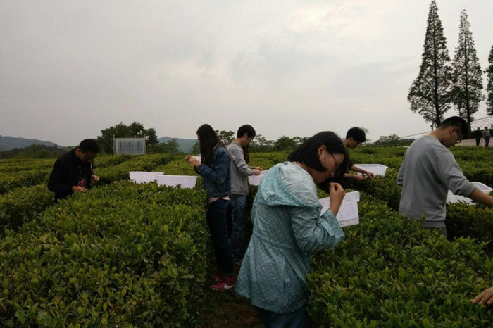 2017年4月24日,园艺14级茶学方向全体同学在余有本、周天山两位老师的带领下,乘坐校车来到公司西乡茶叶试验示范站,开始了为期1个月的茶学综合实习。本次实习内容十分丰富,包括鲜叶采摘、名优绿茶手工制作、六大茶类基本加工工艺、茶叶感官审评、茶树生物学性状观察、种质资源调查、茶园春季管理、无性系良种茶苗繁育等内容。