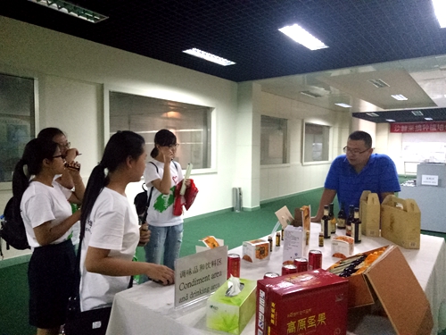 随后,团队成员跟随顾先生来到生产车间,开始了解沙棘产品种类及其加工过程。顾先生说:"我公司提取并生产的沙棘产品以其优良品质备受消费者欢迎。"在顾先生的介绍下,团队成员了解到了"沙棘元元软胶囊"、"沙棘果油"、"沙棘茶"等一些沙棘保健产品的营养价值,并现场品尝了富含维生素的沙棘原浆。高原圣果沙棘产品销路良好,除了在国内广州、深圳、北京等一些大城市畅销外,还出口加拿大、美国等一些发达国家,为"一带一路"贸易畅通贡献着力量。"沙棘全身都是宝,其枝叶、枝干、果皮、果油、果浆、果籽、果肉都是可加工的原料",顾先生这样说道。团队成员继续参观生产工厂,包括贮存果子的小型冷库和枝果分离的分离车间等,深入了解了沙棘产品的加工过程。
