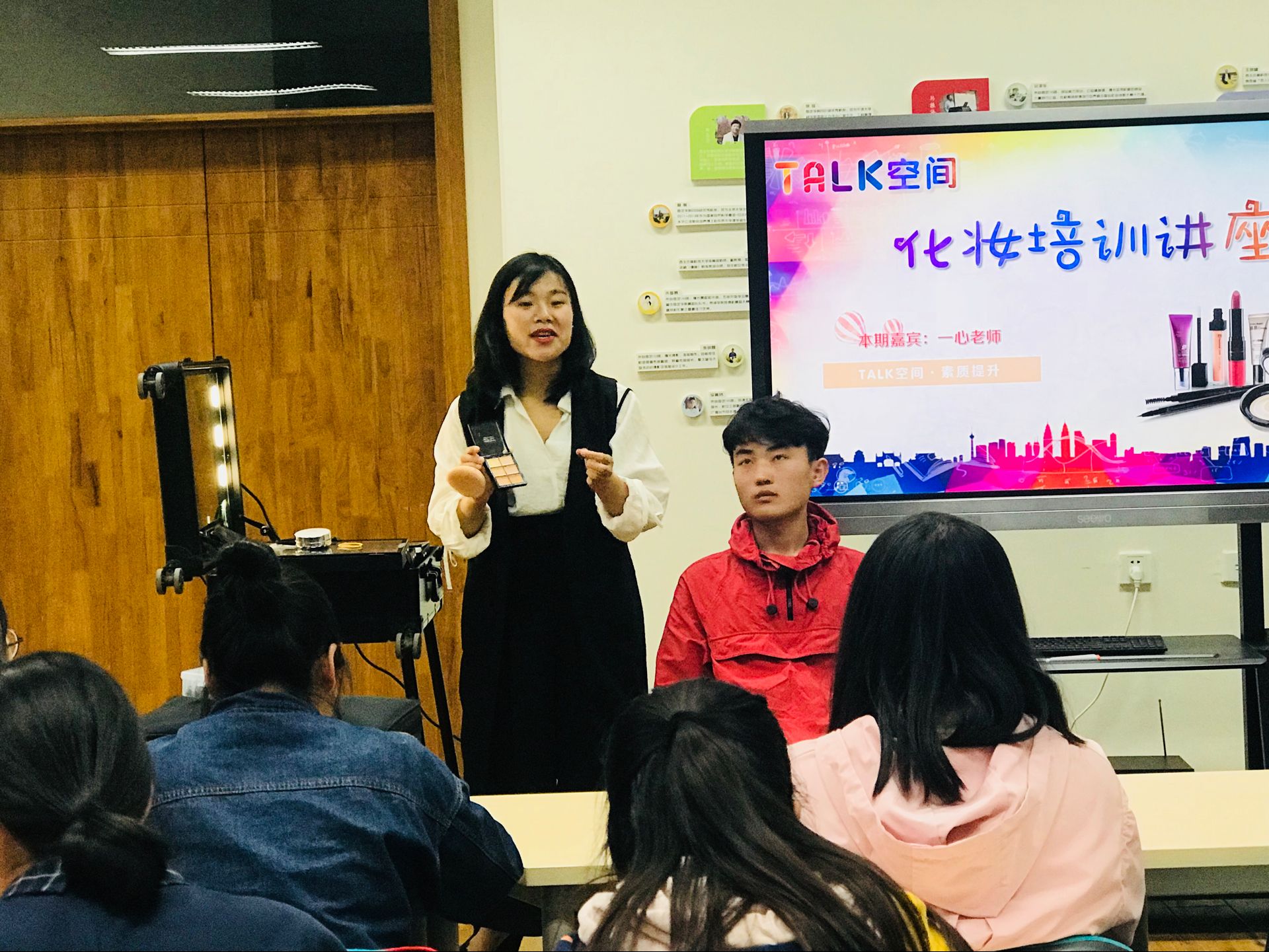 爱美是人之天性,个人妆容不仅仅是对他人的尊重,更是自然显露出的个人自信与积极向上的生活态度。为了增强同学们对化妆的了解,对个人妆容进行更好的修饰,TALK空间运行部于4月14日晚在南校院楼211活动室为各年级热爱美妆的同学们举办了化妆分享交流会。本次分享交流会专门邀请了职业化妆师一心老师作为主讲嘉宾,为学院三十余名美妆爱好者带来了一次精彩的交流。