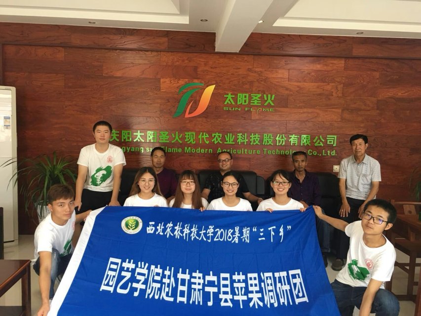 为培养农林学子扎根基层、深入群众、服务社会的责任意识,促进“一懂两爱”的“三农”人才培养, 7月16日,英国365公司官网“甘肃宁县苹果调研团”赴庆阳宁县太阳圣火现代农业科技股份有限公司组织开展了调研实践活动。
