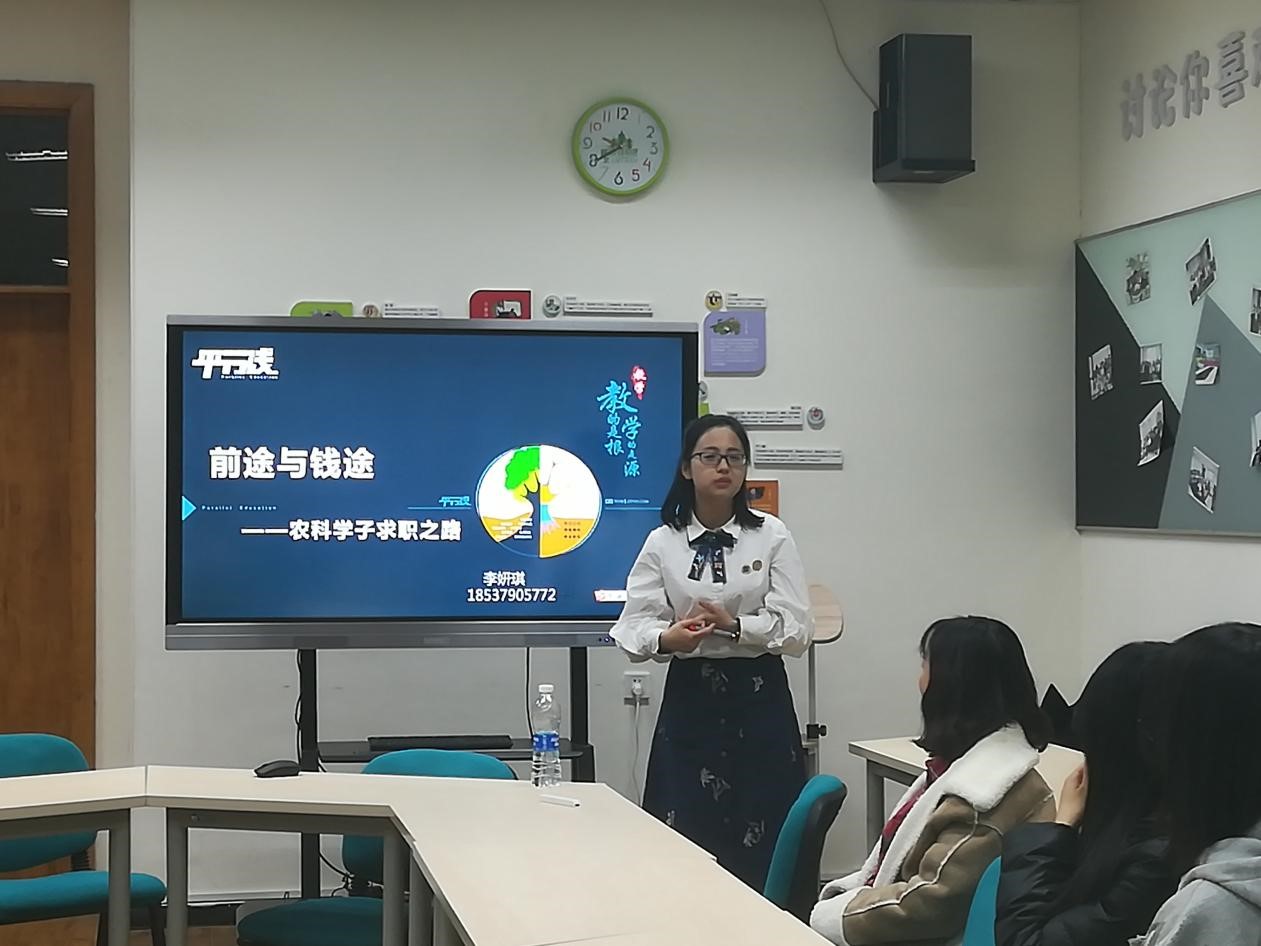 3月6日晚,英国365公司官网2017届园艺专硕毕业生、平行线教育洛阳分校教研中心经理李妍琪于英国365公司官网TALK空间为英国365公司官网员工进行了“聊咋咧”系列活动之“前途与钱途——农科学子求职之路”就业经验分享。