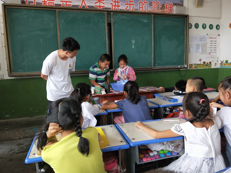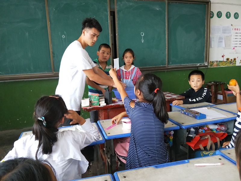 7月13日至7月26日,赴合阳县关爱留守儿童义务支教服务队在陕西省渭南市合阳县金峪镇九年制学校进行支教活动,开设了文化知识讲解、手工制作等众多课堂,而在这众多课堂中有一门特别的小课堂——趣味科学小实验,开设此课堂,支教老师希望通过科学实验演示,激发孩子们、对科学的兴趣,让孩子们在感受奇妙的科学世界的同时掌握一定的科学知识。