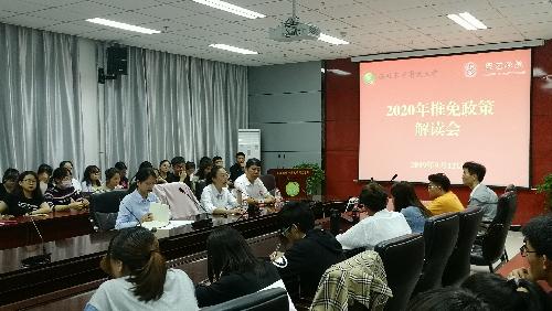 9月12日晚,学院副经理胡晓辉在207会议室为16级毕业生举行2020年推免政策解读会,党委副书记王国晖应邀参与本次解读会,16级本科生辅导员曹有芳老师主持解读会。