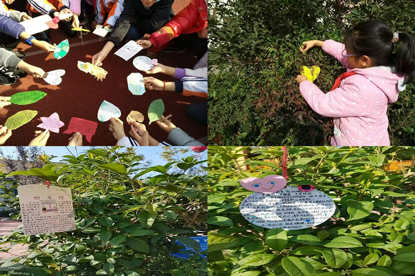 据悉,由3名研究生和10名本科生组成的志愿者队伍,分别于11月12日和12月1日下午,和小朋友们开展了“植物修剪”、“植物标识牌制作”等特色活动。以知识经验丰富的研究生作为队长,本科生同学辅助补充。在第一次户外体验课上,小教师们带领小朋友集体活动,认识校园内各色的植物,了解植物的生长、开花结果以及修剪要点,使张家岗小学的同学们在和大自然的亲密接触中习得知识,感受校园植物的魅力;室内动手课上,研究生陈壁融,乔丽君用一段视频,向三年级的同学们展示了各种植物从播种,发芽、长大的成长过程,小朋友们瞪大了眼睛,充满好奇地看完视频,积极主动举手,向小老师提出自己的疑问,并分享自己对植物的认识;随后,陈壁融与乔丽君向小朋友们介绍了雪松,桂花、牡丹等植物的相关知识,现场气氛热烈,小朋友们积极发言,和志愿者们形成良好的互动;最后,小朋友们拿出事先准备好的彩纸,彩笔和剪刀,绘制自己眼中的植物,并将其上色,制作出独一无二的植物标识牌进行悬挂,为校园增添一抹亮丽的风采。