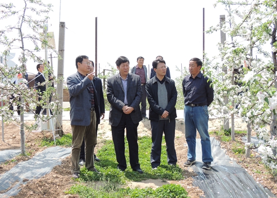 4月25日,陕西省气象局副局长杜毓龙、延安市气象局局长赵榆飞、洛川县气象局副局长高志斌等一行来公司洛川苹果试验示范站,检查指导洛川苹果试验站和延安市气象局合作开展的果业气象研究工作。