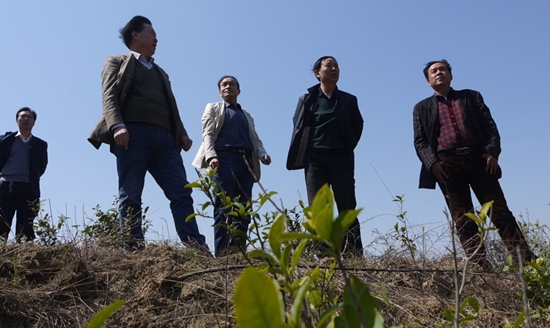 肖斌教授深入山头与商南县茶叶局领导考察当地茶树种植的立地条件
